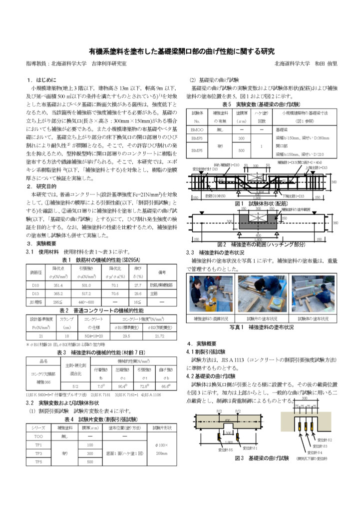 有機系塗料を塗布した基礎梁開口部の曲げ性能に関する研究